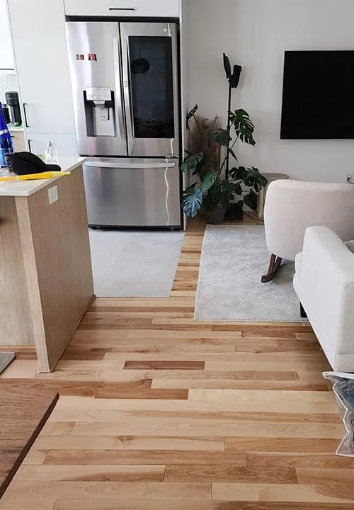 « Pose de plancher flottant dans mon sous-sol, travail rapide et précis. Ils ont tout nettoyé avant de partir, service impeccable et prix honnête. »